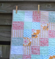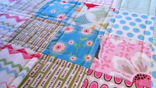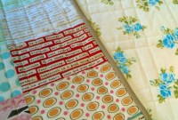 I quilted a straight line on each side of the ditch in both directions, giving a grid effect, which I quite like. and because I think the overall effect of these fabrics is a bit shabby (hopefully in a ‘shabby chic’ kind of way, rather just shabby) I took the opportunity to use up some Cath Kidston yardage that I’ve always regretted buying for the back. I love roses but I’m not mad about roses on fabric and these ones (I think they were my first internet fabric purchase) were not quite what I expected and always remind me of the lines in the
