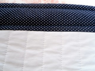 This is the only thing I’ve actually sewn in the last couple of weeks although, for me, that’s been a lot of sewing! (I can’t get a picture of the whole thing without it dragging in mud). I’ve quilted it all over in straight(ish) lines (approximately) 1 inch apart. Of course, I would have liked for it to be perfect but this is my first quilted quilt and also my first bed sized quilt and, overall, I’m happy with how it’s turned out. I was hoping for sophisticated and elegant but I can live with the more homespun look :)