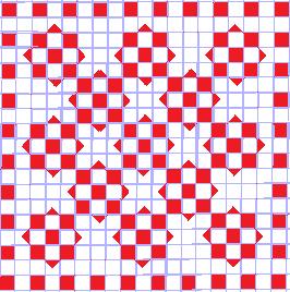 By combining them with some off white, I found it ‘grew’ quite well but when I laid out my blocks, I thought the empty squares were too big to be solid off white.