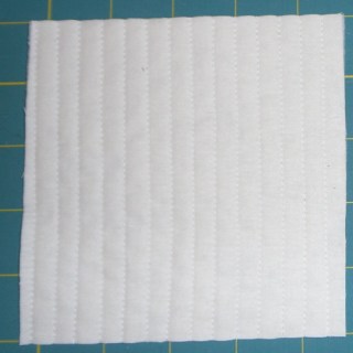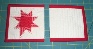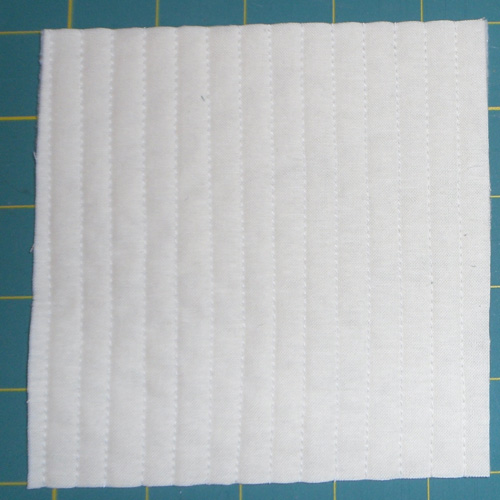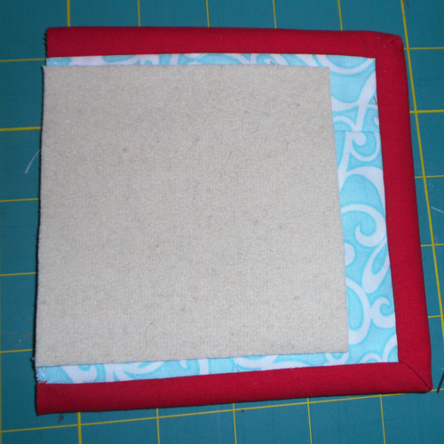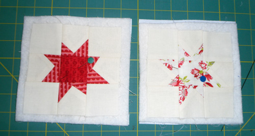 Take your 5 inch block/front fabric and make a quilt sandwich with one piece of batting and one 5 inch piece of backing fabric.