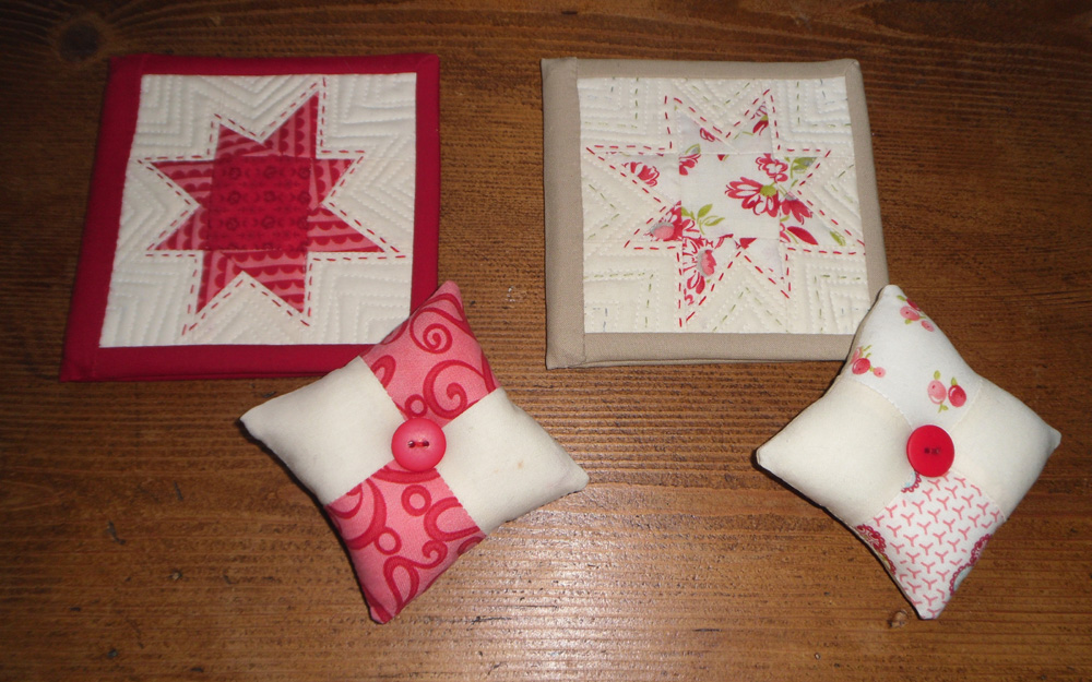 I made coordinating pincushions using 2 inch squares which you can probably work out how to make from the picture.