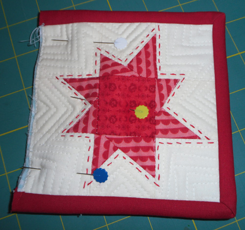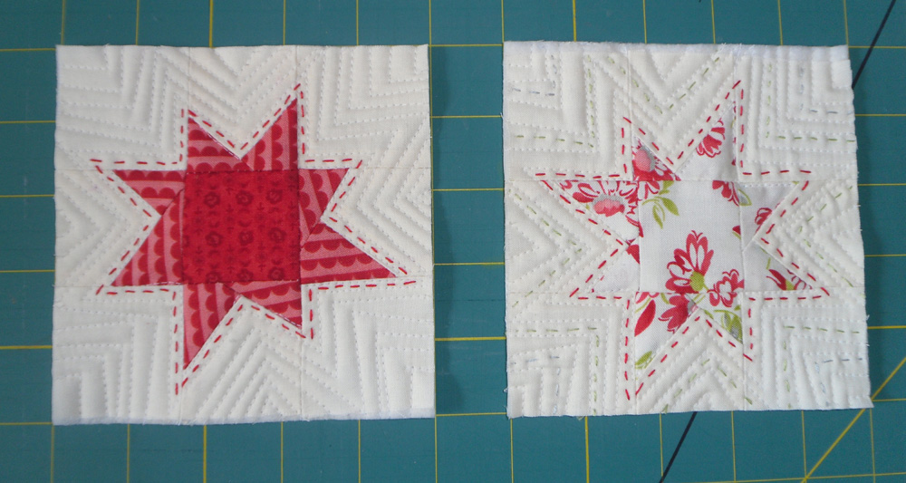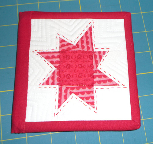 And I added a little hand stitching, mostly to try to make my white star stand out because I, foolishly, hadn’t thought about it disappearing into the background fabric!)