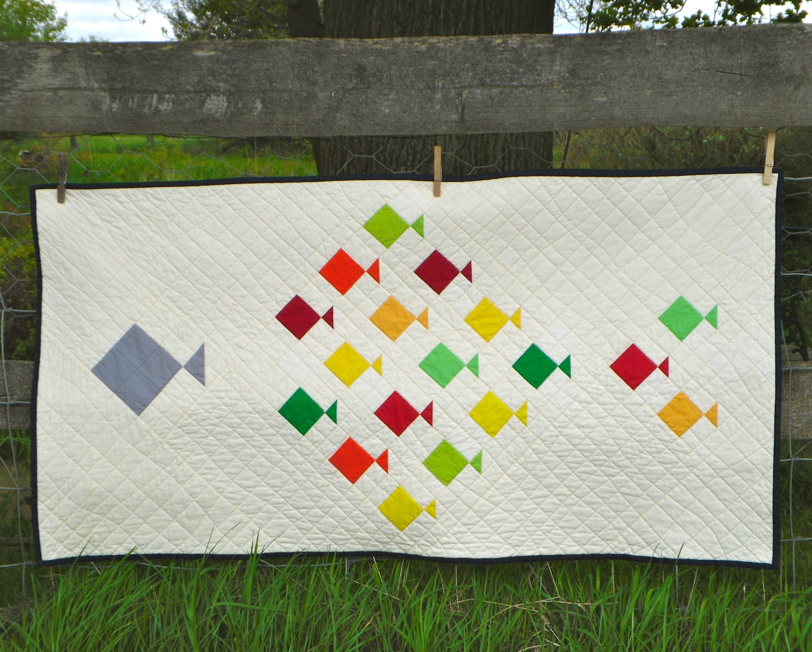 That's fab! I really like that the little fish are in the shape of a big fish! I always spray baste – life is too short not to take advantage of shortcuts!! Yesterday was sunny, but today is grey again, but at least not raining, yet! Have a good day