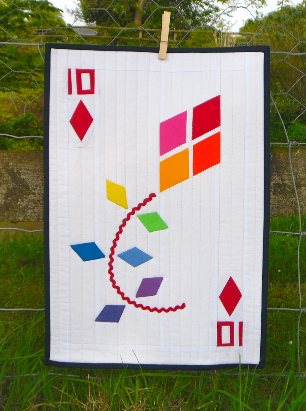 The time has come to head over to Jenna at Sew Happy Geek and vote for your favourite PLAY pick-a-card mini quilt The voting runs from today – 29th of May – until 1st June. All the entries are wonderful but of course I would LOVE you to vote for my Ten of Diamonds Kite!!!