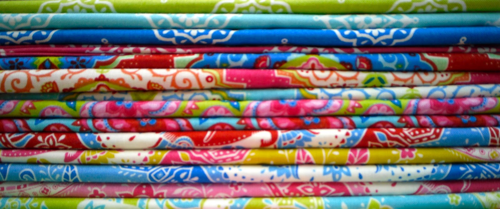 for my Ten of Diamonds Kite Mini Quilt. I had been planning to make my next quilt for one of my daughters so I waited for her to come home so we could choose fabric together. We spent hours pouring over the amazing selection at the Fat Quarter Shop and, eventually decided to buy 14 1/2 yards of Trade Winds by Lily Ashbury for Moda and a dresden ruler.