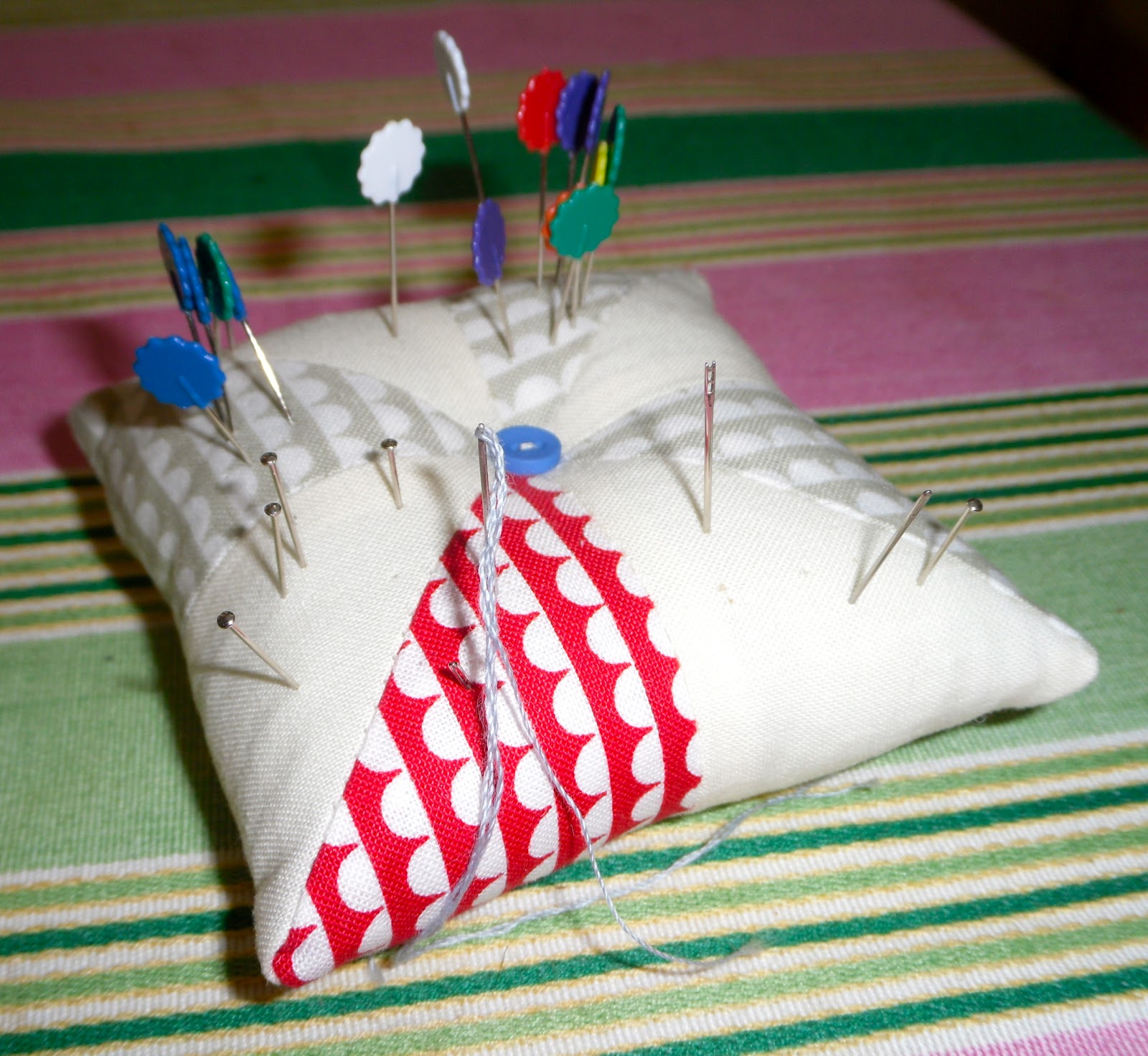 The pin cushion is a cutie. Pinwheels always rock. Also, love the fabric with the little words. An etsy shop…that is pretty exciting. Keep us posted on that.