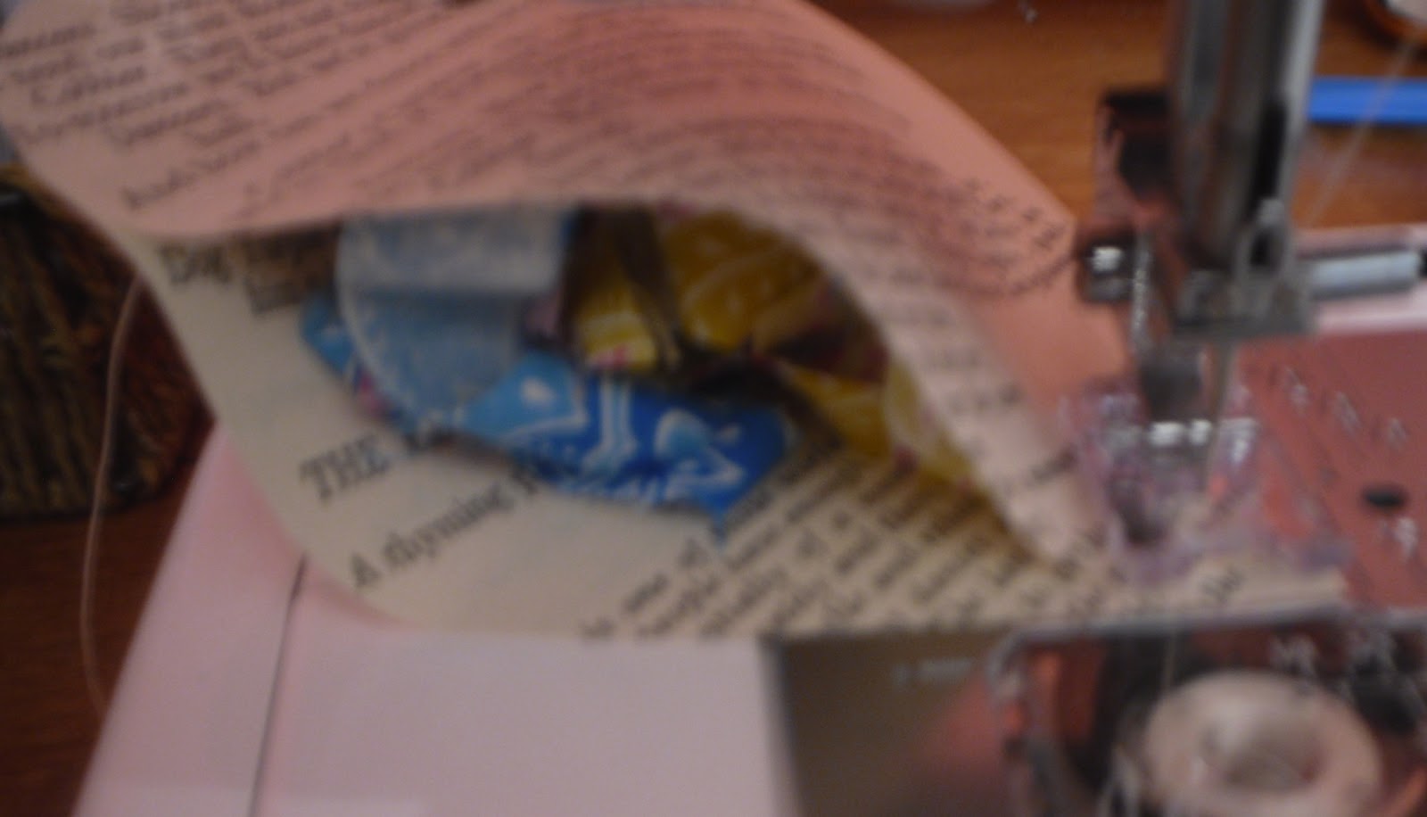 When you reach the bottom point of the heart stop with the needle and presser foot down. Gently open up the two layers and pop your goodies in (I had to use fabric scraps for this test one!)