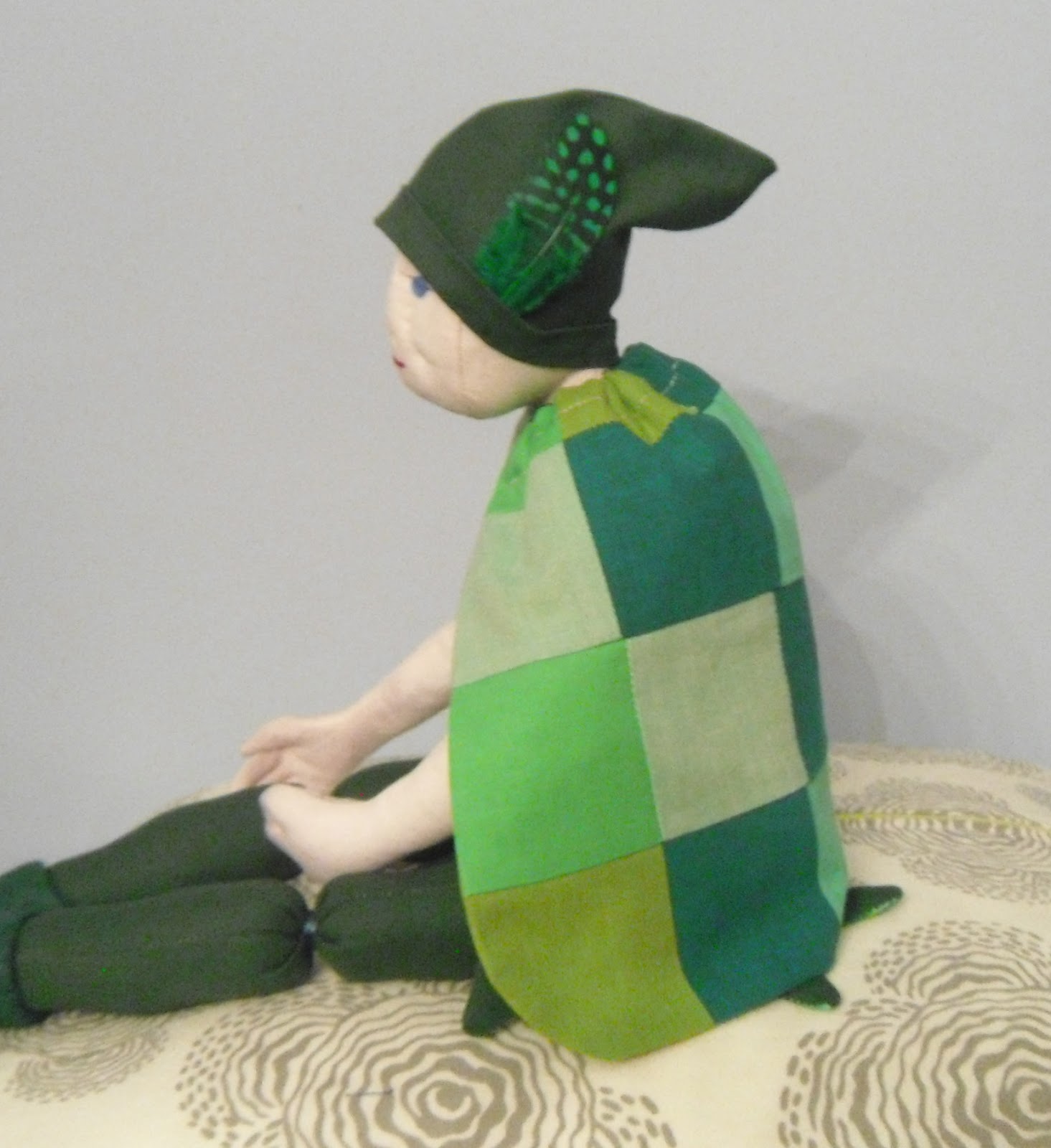 Your elf is wonderful……love his patchwork cape!