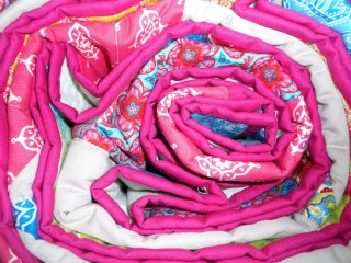 What a beautiful finish! I do like the binding that you used. Oh and don't you love the quarter inch foot? I am so thankful to the man for selling me that when I bought my machine. Love the colors on your next quilt!