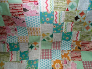 After the wonderful response when I asked what I should use to bind this quilt, I decided on grey because I didn’t have enough coordinating scraps. But then I realised that I’d have soooo many joins I decided to go for a solid and this was the only matching one I could find.