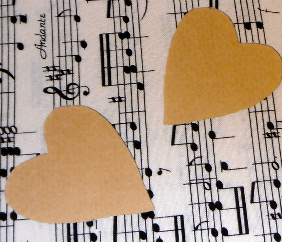 Two pieces of musical notes fabric fused together with two heats cut out…