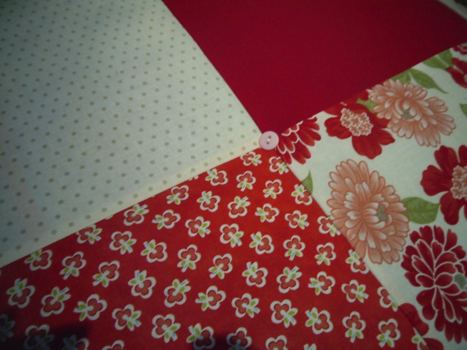 But once the fabrics were sewn together it seemed a shame not to be making a quilt of it so I added some buttons to make it a sort of tied quilt.