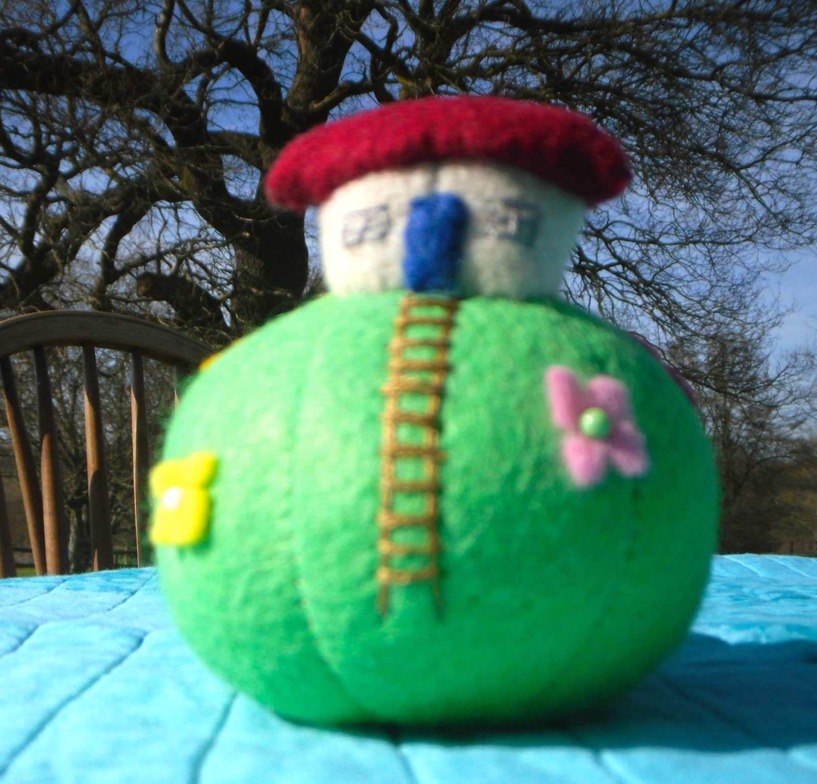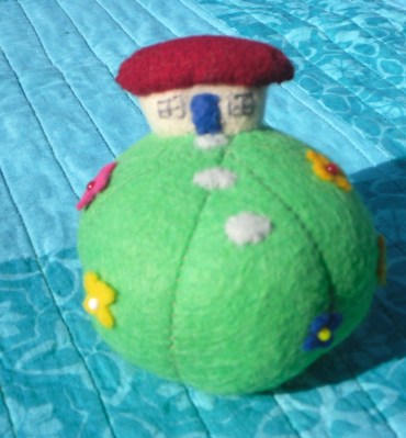 If I had one this pincushion is my most recent project that I would have pinned to it. I planned to add some sheep but once I’d made a world less that 3″ in diameter and a house less 1″ tall the scale became too daunting!