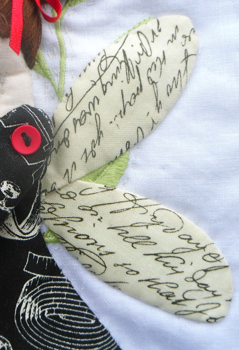 And an exciting new applique technique I read about on Karen’s blog. I found it was much less clunky than my usual freezer paper efforts and you can get an idea from the wings…