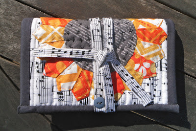 Gorgeous sunflower! I love that music print so much! The grey center and the binding is so perfect with the orange sunflower. Thank you for this beautiful inspiration, I may just have to make a sunflower pouch for my markers :)