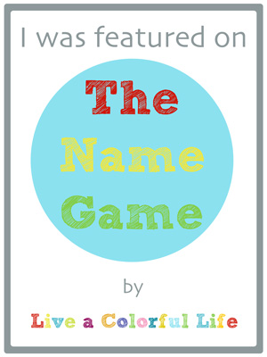 Today, I’m very excited to announce that I’m being featured on the Name Game over at Live A Colorful Life so if you’re wondering about the name of my blog you can find out why I chose it by hopping over to Cindy.