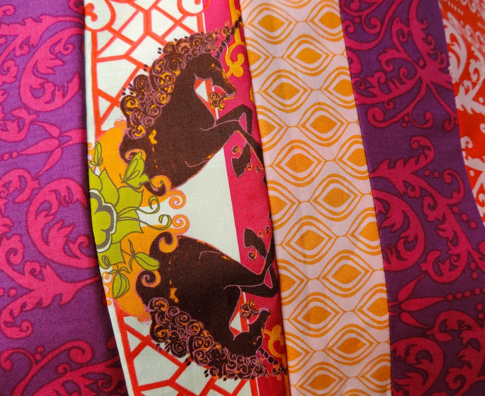 The fabrics for your new project are fiery and fabulous. Love the unicorn print. Your pick up put down project looks very intriguing. Pretty bee blocks. Cute pin chshion …Looks like you have been very productive to me … :) Pat