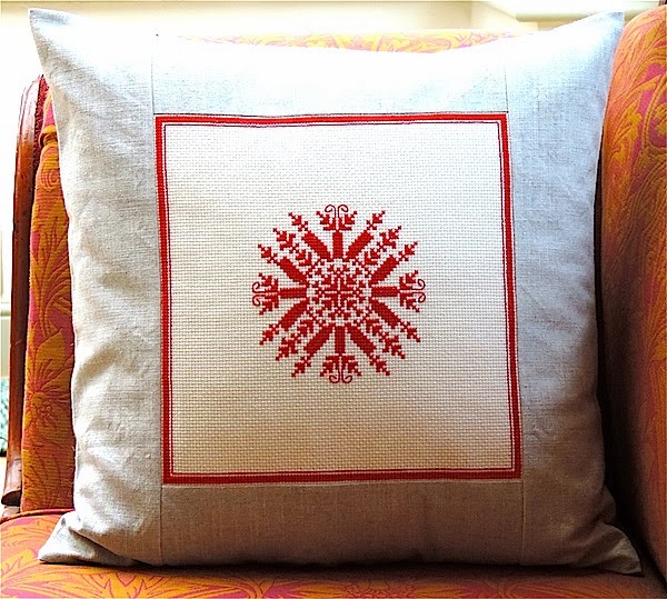 i love the cushions you made, the left-hand one is really beuatiful, where did you get the pattern from?