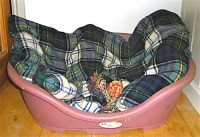 Useful things – We are like the shoemaker’s children who had no shoes! I have somehow managed to spend two years sewing and giving away bee blocks and mugrugs and wall hangings and pouches whilst our home dec and clothes get shabbier and shabbier! It’s not that we lack material objects – like most people in the west today we have far too many things. It’s more that I don’t want the hole in the ozone layer to grow bigger than I can help on my account, I try to avoid purchases that involve the exploitation or mistreatment of people or animals and we’ve been in a Recession for a very long time. So this year I’m focussing on using up what I’ve got in the way of fabric, yarn etc – and bizarrely a LOT of felt squares – and I’m going to bring the three Rs (reduce, re-use, recycle) more into my crafting. I made a start with a new bed for Lucy, made from a holey picnic blanket and a duvet that had seen better days – she was so impressed she relocated to the hall but I think that’s her usual response to all new/clean un-dog-smelling beds. I wouldn’t be comfortable selling or gifting items made from fabric that isn’t in perfect condition but I’m happy to upcycle textiles to brighten up our house. We also have things that I don’t throw out because I think I’ll mend them but I don’t get around to it…So I shall be mending and re-purposing…