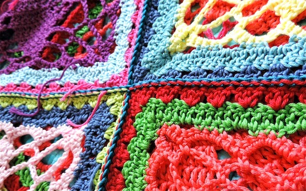 After I’d re-arranged the crochet squares for the 174th time, I decided enough was enough and it was time to join them together. I’ve been joining from the back by crocheting together the outside halves of adjoining stitches. I don’t know if that makes sense.