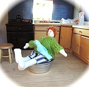 After she had had finished her toast, Knit played boats with Ophelia in the wash tub…