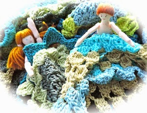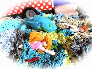So all morning, Knit and Purl carried great balls of sea coloured wool to Granny Square and all morning Granny Square crocheted and by lunchtime the sea-coloured wool was all used up.