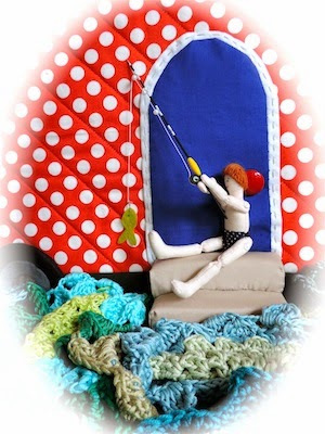 Purl swam away to safe distance as Knit cast his line and, to his surprise, when he pulled it up there was a little wriggling fish on the end. He thew it back and straight away he caught another one. “Fishing is fun!” He shouted to Purl. “I never knew it was so easy!”