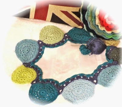 It will be a pretty cowl with those circles and crochet