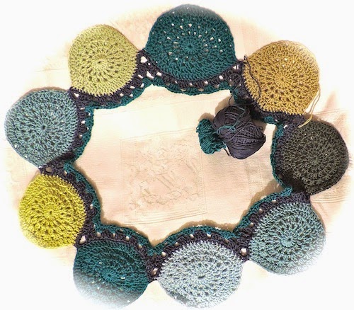 It will be a pretty cowl with those circles and crochet