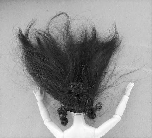 I know how my hands would work (would NOT work, that is) on an item that small – I couldn't even attempt it – I think if you can work out the “bugs” you can have quite a gorgeous item … with a lot of work! OMG Lily's hair, though – she DOES look like a barmaid (or harlot, lol) in that first pic where she has tresses – I guess it looks worse in person (??) because it seems to look quite luscious in the picture!