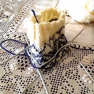 It's not nearly as cold here, but I am making mittens too. Hahahahahaha…”War and Peace continued, after a fashion…” I think she wanted you to sew them together. I like them :)