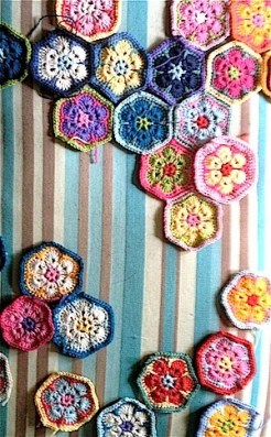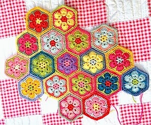 Your hexagons look like a beautiful millefiori paperweight. Fab. I've been trying a few crochet hearts but not sure what I will do with them. I'll link up next week with some knitting progress but I've been doing too much sewing this week. Have a great week.