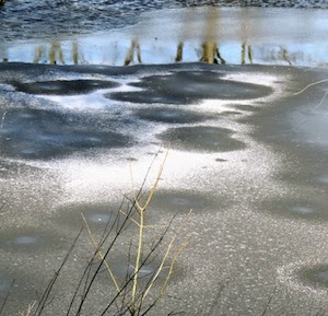 Meanwhile, outside it was snowing, freezing and thawing repeatedly – except for the pond, which started thawing at one end and is slowly melting towards the house. Although it freezes and melts all the time, it has never done that before.