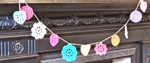 Grannie Heart Tutorial at Cherry Heart, which I would very much recommend even if you haven’t crocheted before, and, although the one I made was too big for my garland, I was able to adapt the size.