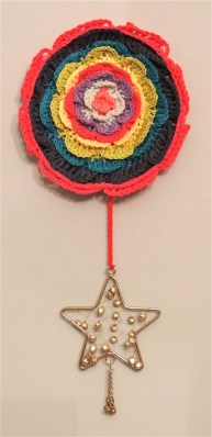 So I set it aside and started a garland – the charts being easier to follow as the shapes finish flat. I added some rows of double crochet here and there to vary the sizes.