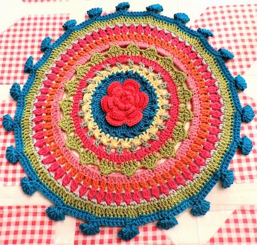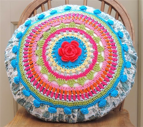 Such a beautiful cushion! love all the colours and the bobbles finish it off just lovely!
