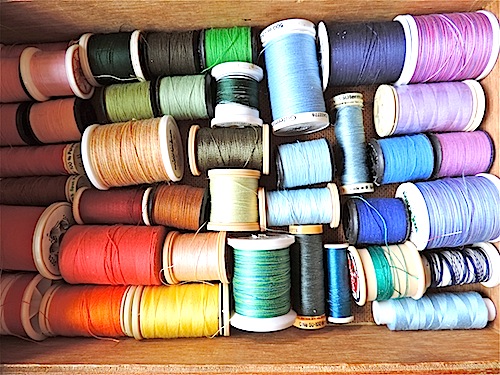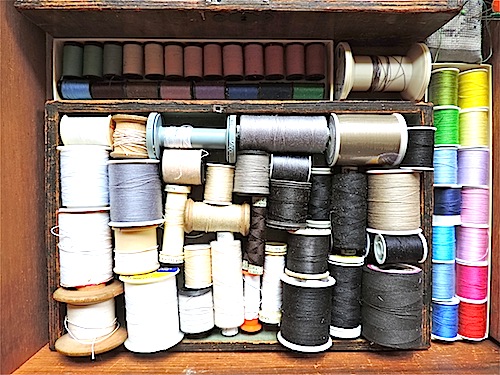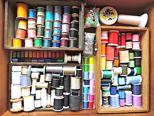 That first pic looks like a poster – would be perfect for my wall!!! I have my threads sorted by make, it's a ridiculous OCD as I much prefer looking at them by colour, but such is life (buttons are by colour: half s dozen large glass jars; red, blue, green, yellow, pink&purple, brown&black and White! I think I need to put more effort into keeping a clear work space and less into obsessing about threads and buttons !!!!