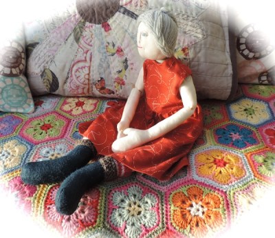 As I have nothing new in the way of yarn makes this week, I’d thought I’d show some more pictures of a doll called Alice (named after my grandma by the lovely Benta). You may have met her a little while ago, when she was waiting for the light. Eventually the rain did stop and the sun came out (briefly) allowing me to take some photos before she went on her way. Really, she is just as much a yarn make as a sewing one…