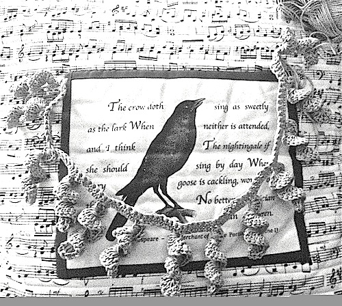 Oh wow….your twiddly fringing is very cool. I read the instructions…but alas it's another language to me….I must, must learn to crochet. It sounds tricky. Don't “frog” it….it's beautiful. As for deciding what to do when I have a spare 30 minutes, it takes me 30 minutes to decide what to work on, hence another block of time dissipates. =) I am a gal that loves lots of projects stacked up; it makes for a more interesting life and eventually they do get finished. Though of course there are times when I am hell bent on finishing one project.