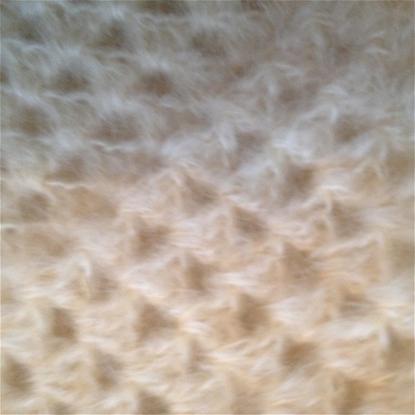 And, now, onto wool. Last week my mother gave me a bag full of hand wound balls of undyed mohair (dk weight). It really is fantastically fluffy – the yarn equivalent of candy floss!
