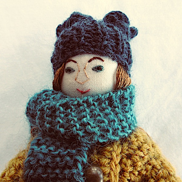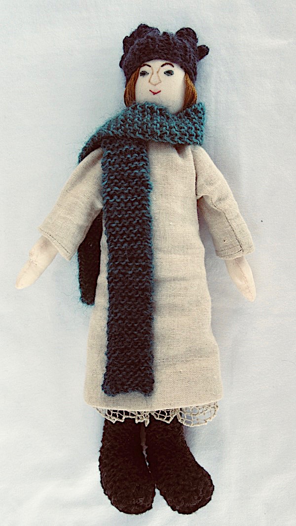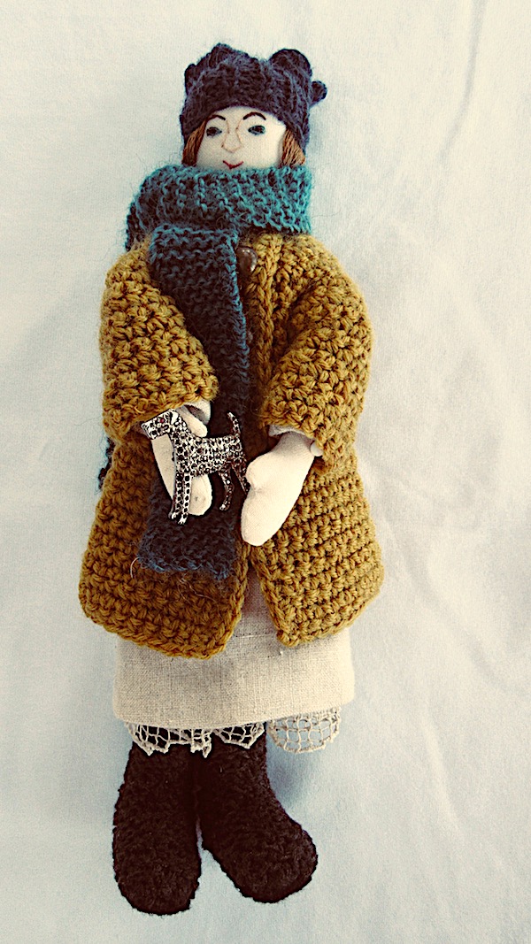 These days, she has to wrap up warm so she puts on her knitted hat and scarf, her crochet coat and, of course, her knitted, felt-soled boots because nothing, as we all know, is warmer than wool in cold weather.