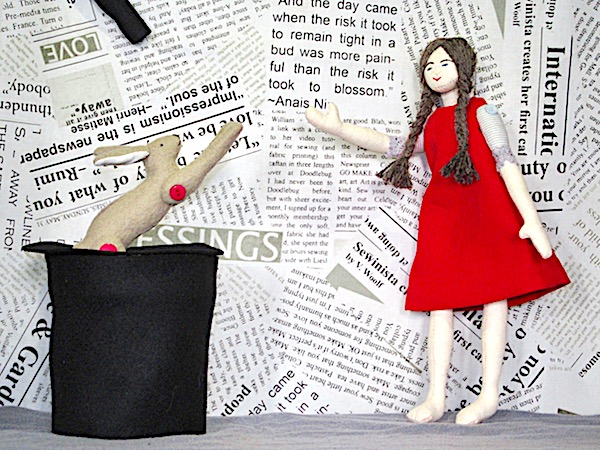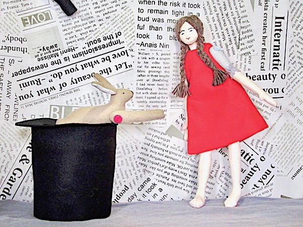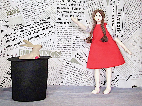 You have created magic with your sweet little doll and hare, Janine. Both are adorable!