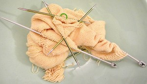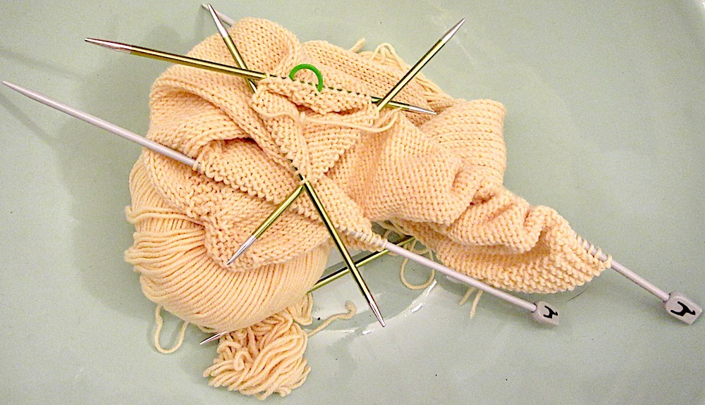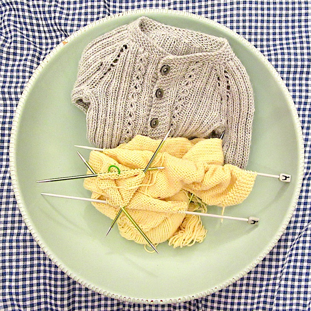 Of course, this means knitting but, having only had babies myself during the colder months, it’s hard to get to grips with the idea of trying to keep a newborn cool. So I’m knitting some 3-6 month pieces in colours that can be for a boy or prettied up a bit for a girl.