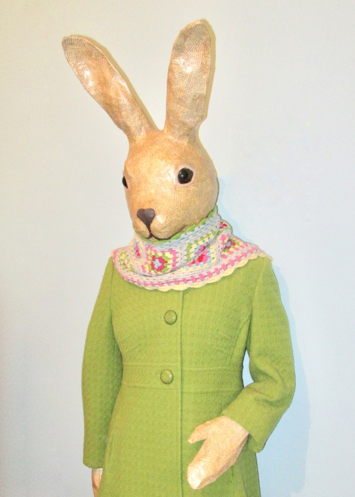 Mrs Hare’s crochet scarf looks lovely and goes well with her new coat, very classy! I hope your blog makeover goes well.