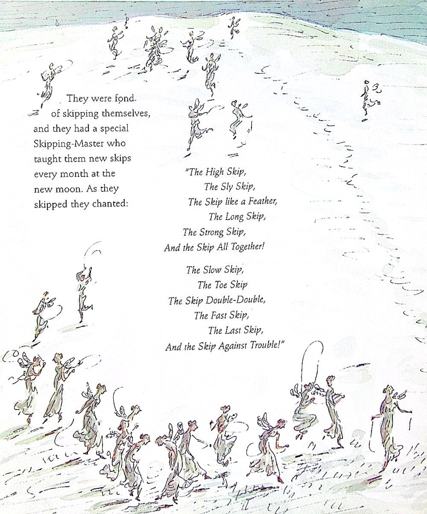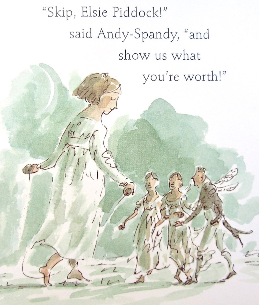 The book I chose is called ‘Elsie Piddock Skips in Her Sleep’. It was written by Eleanor Farjeon and the illustrations are by Charlotte Voake. I first discovered this book when my youngest daughter was six years old and if you know a little girl who is five or six, I can recommend no better gift than this book together with a skipping rope :)