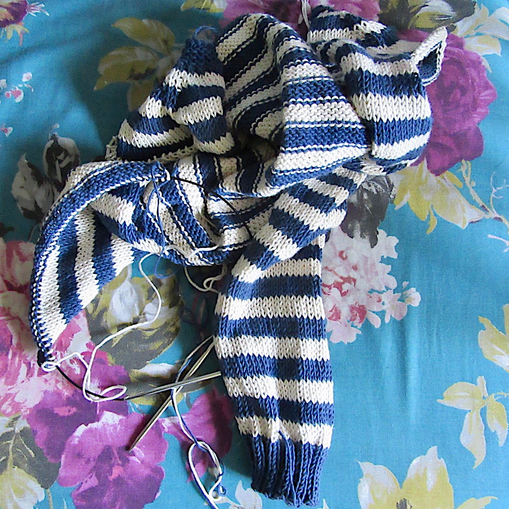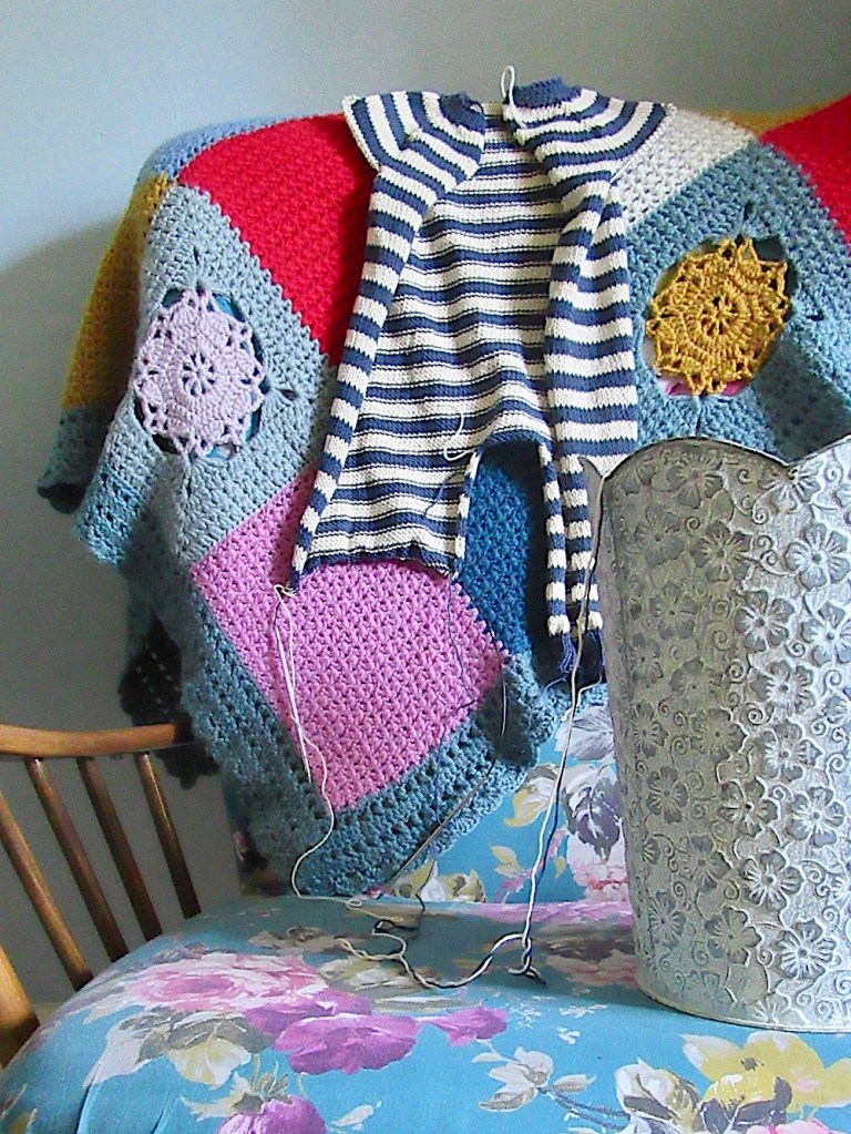 My making was less successful. I did sew but my knitting is still in progress. Now one leg is done of the stripy thing…