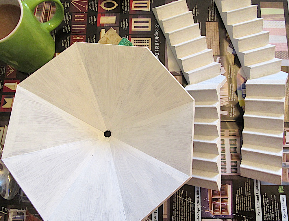 The lighthouse making was on my leap list in May and my reason for making a lighthouse at all was that I have some Granny Square stories awaiting illustration. Also, that it is always good to have a project to ponder and plan about during the long times when actual making is not possible. And I planned to cobble something together with cardboard and paper mache and perhaps that would have resulted in something spectacular or perhaps it would have been a disaster. Either way it would have been a lot a cheaper and I suspect a lot quicker than the kit I found on sale and was lured into to buying by a special offer and the sudden conviction that it would much simpler than always inventing the wheel. The kit, in case you are tempted, is the New England Lighthouse Kit by Real Good Toys and I bought it from a UK dolls House seller. I’ve seen a few looking great on pinterest and if you have some experience and expertise in such things, you will probably find it manageable but, I would suggest, it it not the most ideal project for the absolute beginner of the fain hearted.