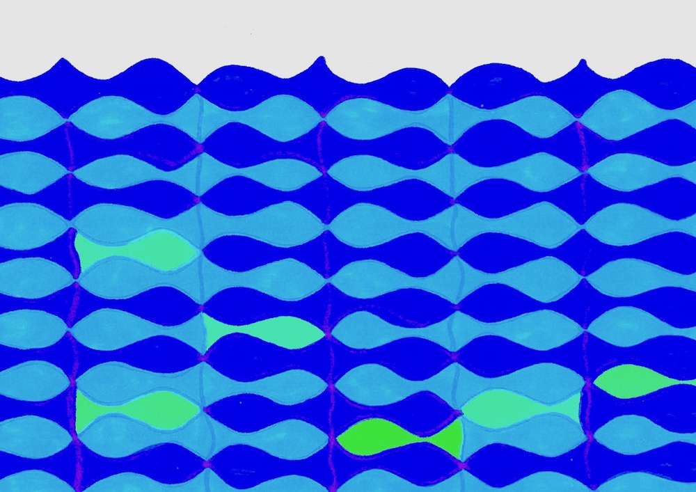 I sketched the fish/sea shapes and traced over them with a sharpie. Then I coloured the shapes also with sharpies but any pens or paints would do equally well. Then I scanned the image onto my computer.