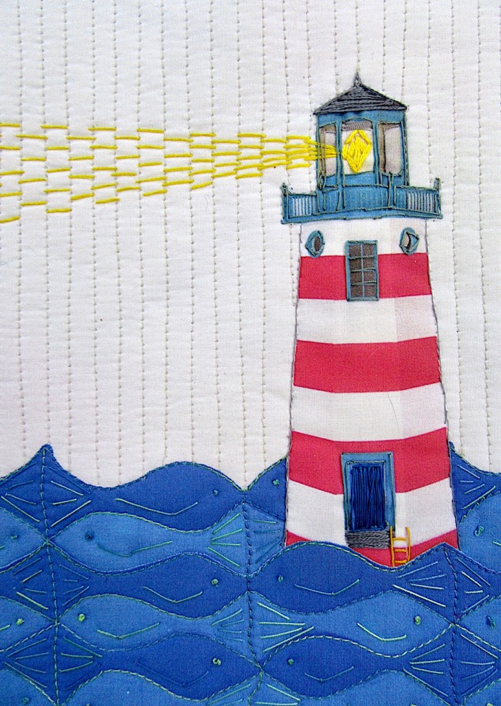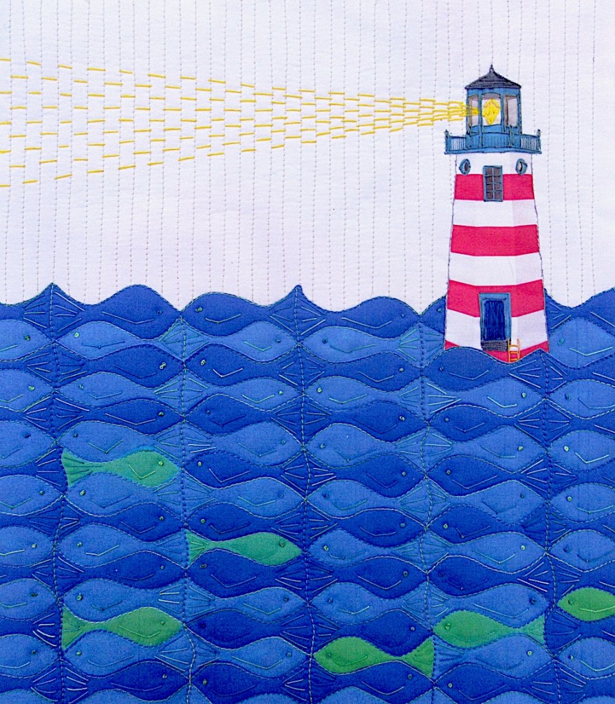 Janine, the fish are amazing. Such a clever idea to draw the fish, colour them in and then laser print them. The lighthouse is fabulous, too. Of course your quilting brings another beautiful dimension to both the fish and lighthouse. I always love to see what new and exciting imaginary ideas you dream up. Your Plenty Of Fish In The Sea quilt is magical.