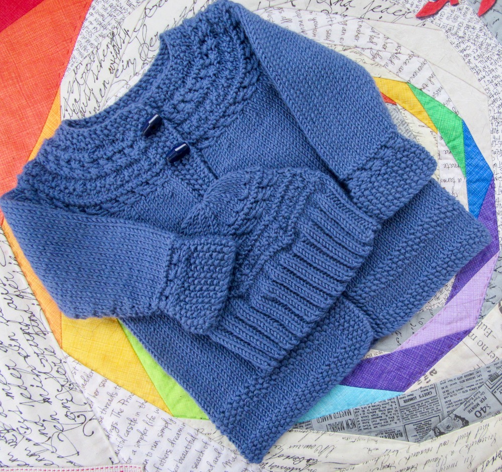 Such a pretty baby cardigan and hat. ‘Tis a lovely pattern and the colour is divine. Love those buttons, too.
